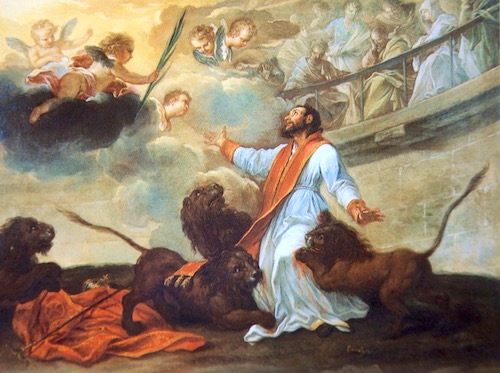 ¡Oh Pan puro y glorioso de Cristo, tu Maestro! por fin conseguiste lo que deseabas. Toda Roma, sentada en las gradas del soberbio anfiteatro, aplaudía el desgarre de tus miembros; mientras los dientes de los leones trituraban todos tus huesos, tu alma, dichosa de poder entregar a Cristo vida por vida, se lanzaba veloz hacia Él. Tu suprema felicidad consistía en sufrir, porque sabías que el sufrimiento es una deuda contraída con el Crucificado; sólo deseabas llegar a su Reino después de haber experimentado en tu carne los tormentos de su Pasión. ¡Oh Mártir, ten piedad de nuestra flaqueza! Alcánzanos que seamos fieles a nuestro Salvador al menos, frente al demonio, a la carne y al mundo; que entreguemos a su amor nuestro corazón, si es que no somos llamados a ofrecerle nuestro cuerpo en sacrificio.